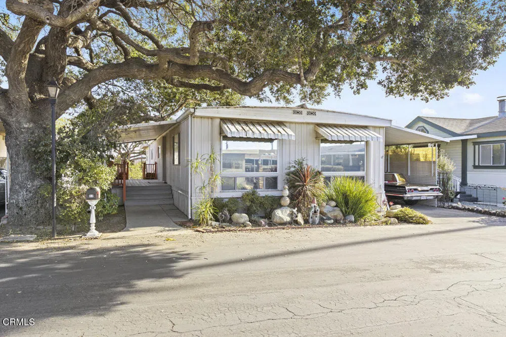 Exceptional stunning home comfortable lifestyle in this delightful 2-bedroom, 2-bath Santa Paula residence in The Oaks senior park (55t) Mobile home park. Beautiful landscaping borders the pathway leading to this single-story home's covered porch. Discover an inviting mfg., home approx. 1,344 sq ft. (per assessor's records) An abundance of natural light across the seamlessly flowing layout creates a welcoming atmosphere as you entertain in the living and dining areas. In the immaculate kitchen, prepare sumptuous dishes, ample cabinetry, and gleaming countertops.Enjoy serene repose within the two bedrooms, including the larger primary retreat featuring a large closet, an ensuite, and glass sliders to a personal office. Venture out to the backyard and hold memorable gatherings amidst breathtaking mountain views. Notables include the newer Heating and A/C system, newer water heater, laundry nook, attached carport, Park is for Seniors (55t) with clubhouse and pool. Santa Paula is nestled between Los Angeles and Santa Barbara and just 15 minutes the from Ventura County beaches!